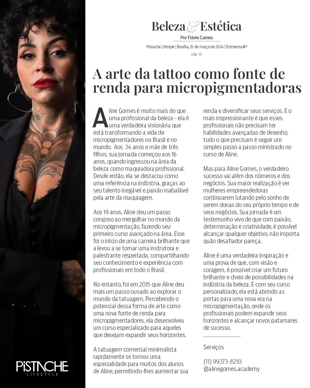 À frente da Revista Pistache, a empresa se destaca no cenário da comunicação e mídia digital, conectando marcas, empresários e histórias reais ao público por meio de conteúdo estratégico, elegante e relevante.